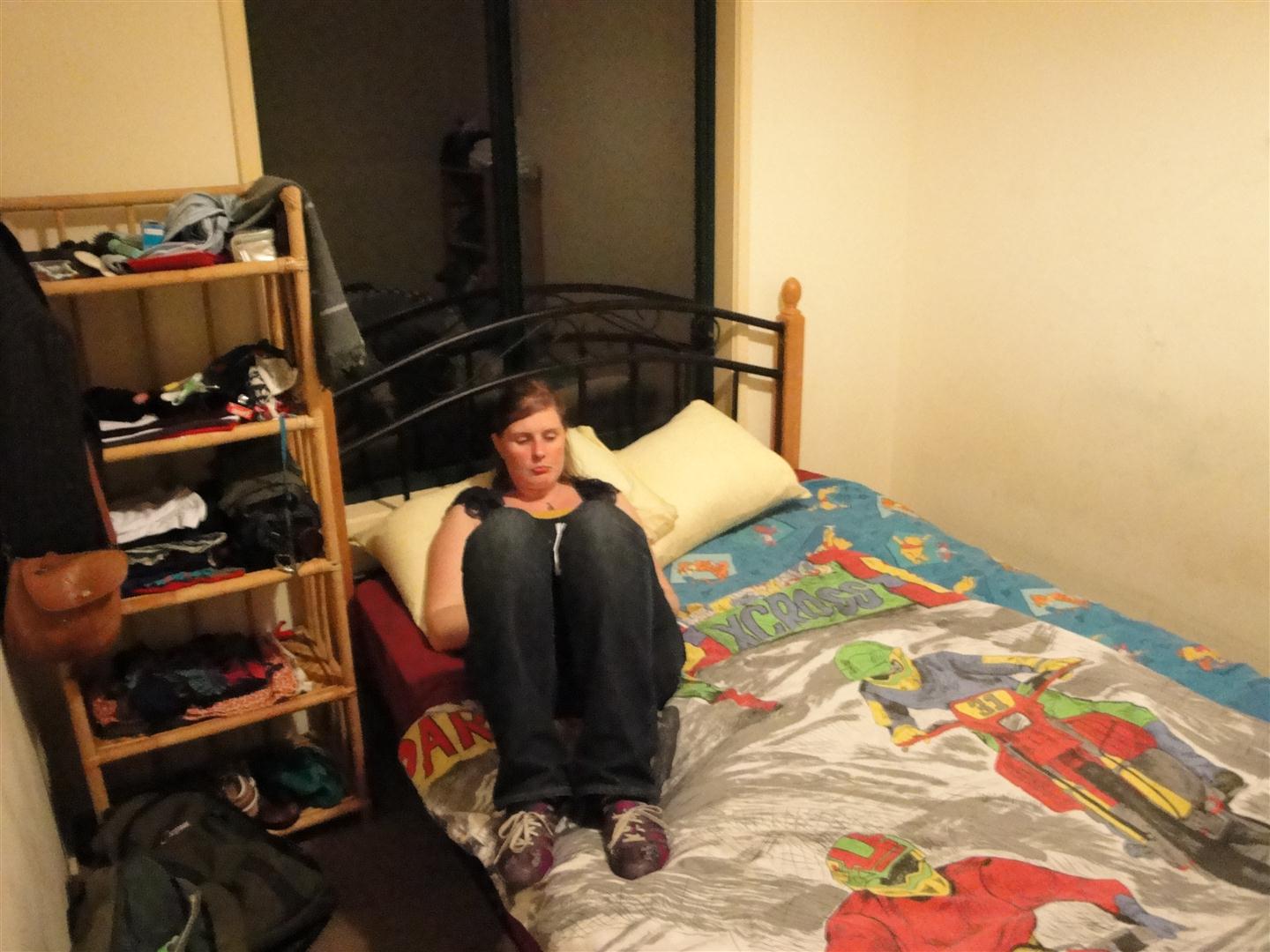 We didn’t expect it to be so dirty. The walls in our room were covered in marks and stains and looked like they’ve never been cleaned. The bed was a cheap metal-framed affair which had at some point in its history collapsed, and was now being held up by two bricks. The mattress was brown and paper-thin. The pillows were equally measly. There were two single duvets for the double bed. We were provided with clean covers at least – a Tigger duvet cover and a motorbike one. I took the motorbikes.