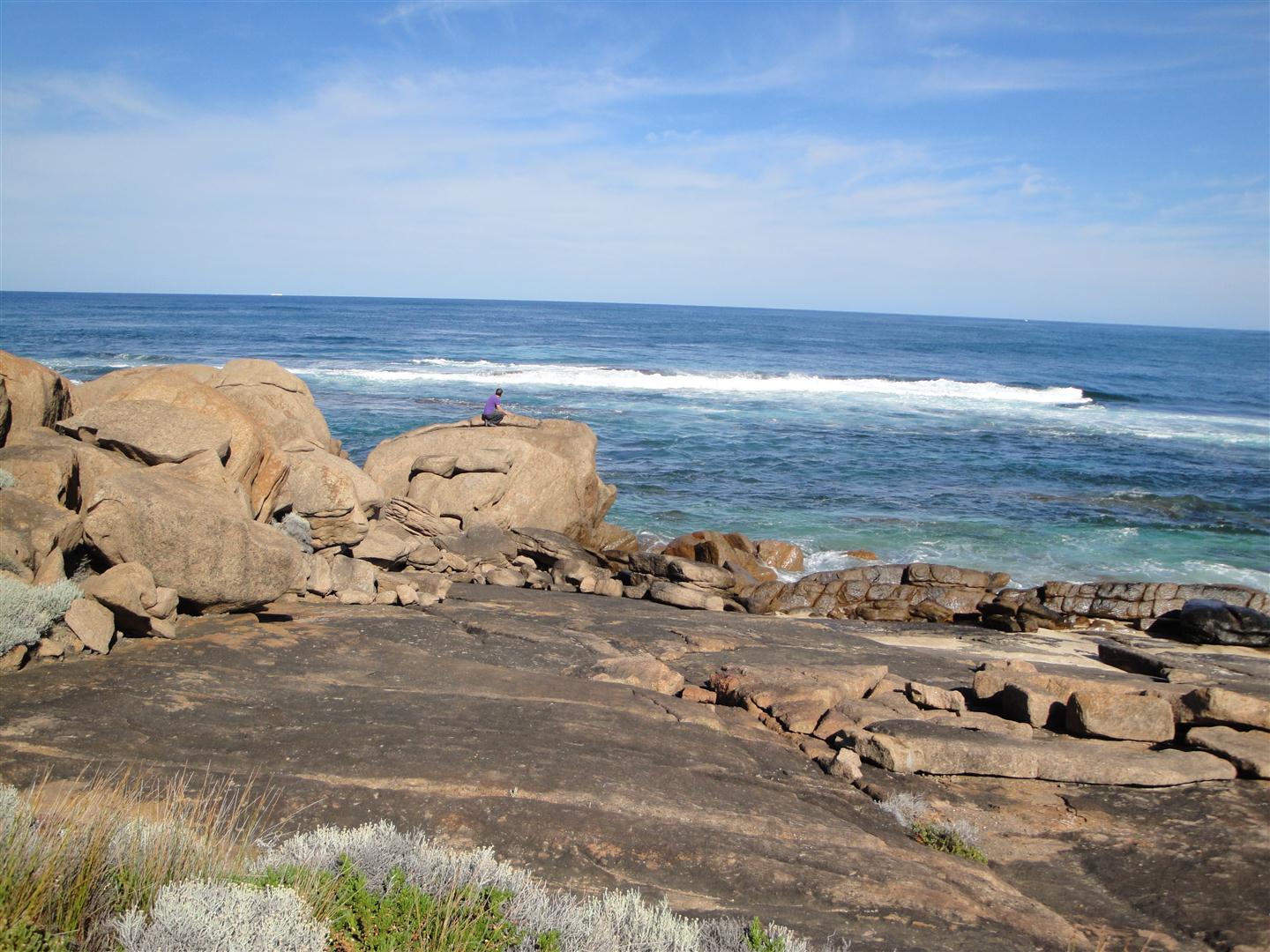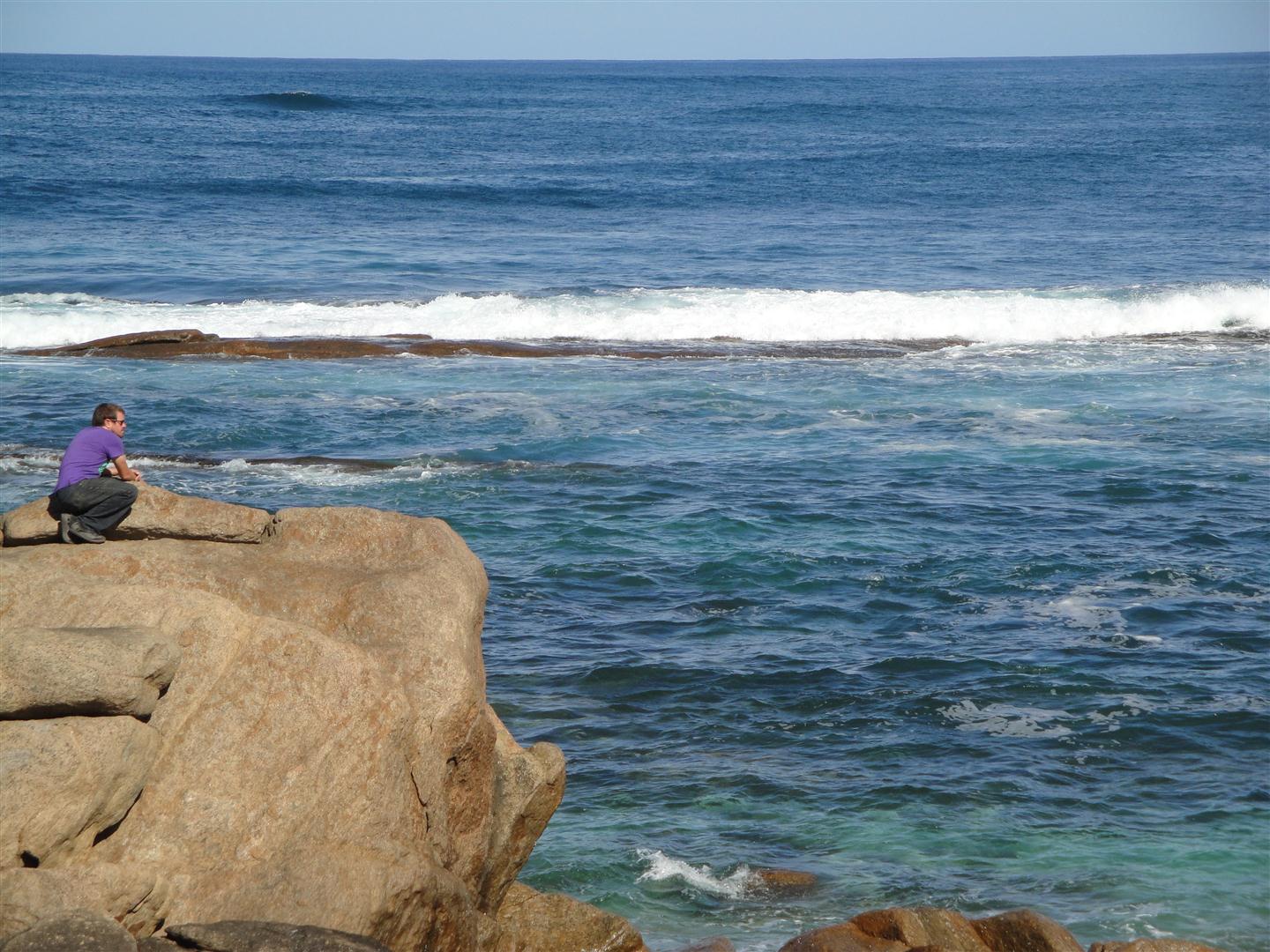 We passed through Walpole on the way to Albany and did the famous tree-top walk in the valley of the giants, which was great but not as much fun as the (much taller) climbing trees. Over this part of the trip we were left wondering why every single tourist information centre in Australia sold hand crafts and chutney. Later we stopped, almost by chance, at Green Pool Beach – the first of what would become many beautiful beaches along the south coast of WA. I think this one is still our favourite, though. It is a large shallow pool held still by huge granite rocks against which the distant waves would crash violently. Half of the beach was white sand and the other half was flat rock. The water was so clear it looked like glass.